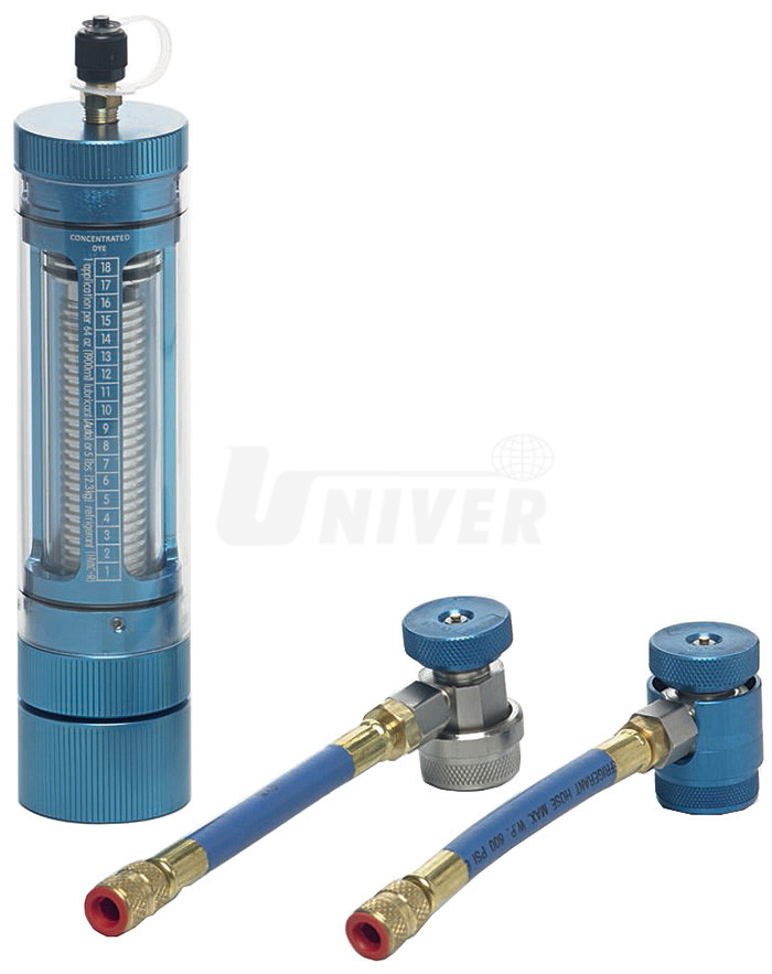 Praktický vstřikovač pro manuální doplňování oleje nebo aditiv do klimatizací vozidel včetně hadice a rychlospojky.