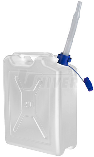 Kvalitní plastový kanystr 20 l s pružným výtokovým nástavcem umístěným v kanystru a integrovaným odvětráním na AdBlue / močovinu a na vodu má rozměry shodné s klasickým armádním kanystrem.- kanystr je vhodný pro AdBlue / močovinu a také vodu