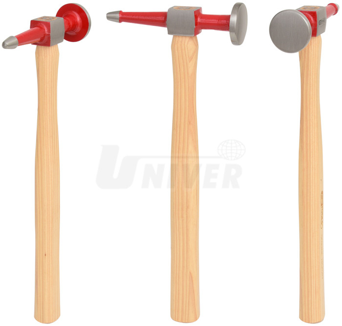 Karosářské vyklepávací kladivo délky 325 mm a hmotnosti 460 g s rovnou kuželovitou špičatou stranou hlavy a kulatou stranou hlavy.- standardní vyklepávací karosářské kladivo s rovnou špičatou kuželovitou a kulatou hlavou