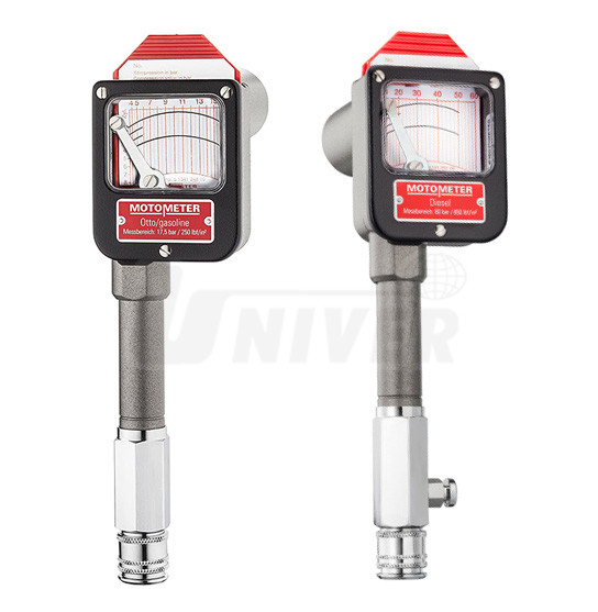 Kompresiometry pro přesné měření průběhu kompresního tlaku ve válcích zážehových motorů (3,5 – 17,5 bar) a vznětových motorů (10 – 60 bar).- přesné měření kompresního tlaku ve válcích zážehových a vznětových motorů, včetně grafického záznamu průběhu tlaku na záznamové karty