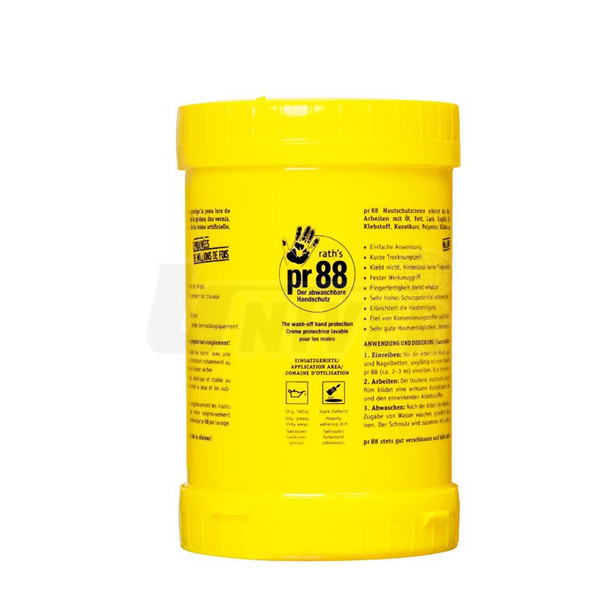 Před zahájením práce se na ruce dá cca 2-3 ml (množství velikosti lískového ořechu) krému a ten se pečlivě vetře do rukou (obzvláště v místech nehtů a nehtových lůžek) a nechá uschnout. Suchý, elastický, dotykově stabilní, spolehlivý ochranný film vytváří účinnou bariéru mezi pokožkou a na ni působící pracovní látkou a zabraňuje pronikání částic nečistoty do pokožky. Po skončení práce se ruce nahrubo otřou hadrem (pokud je to kvůli vrstvě nečistot vůbec zapotřebí), pozvolna umyjí vodou, dobře se opláchnou a osuší. Nečistoty se spláchnou z rukou spolu s krémem pr88. Použití dalších mycích/čisticích prostředků už zpravidla není zapotřebí. Skladovací podmínky: teplota 0°C až 25°C.