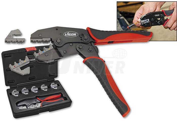 Krimpovacie kliešte so sadou výmenných čeľustí VIGOR V2499