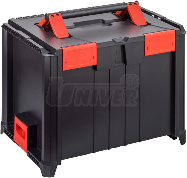 Vysoký plastový kufr s víkem a držadlem, který lze zacvaknutím spojit s dalšími kufry řady VIGOR Multibox-L a ve spojení s podvozkovou částí vytvořit i modulový vozík.- vysoká kvalita (dceřiná společnost HAZET/Německo)