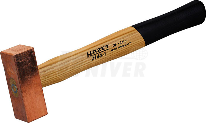 Měděná kladiva různé velikosti a hmotnosti s násadou ze dřeva Hickory.Ergonomická násada z Hickory-dřeva/ořechovec (ze stromu rodu Carya s trvanlivým, extrémně tuhým, ale zároveň ohebným dřevem), troj- až čtyřnásobně vyšší bezpečné zatížení než standardní násady z jasanu, struktura dřeva s dlouhými vlákny, i při poškození drží násada stále pohromadě, což zaručuje podstatně vyšší bezpečnost v případě, že se násada zlomí, násada tlumí vibrace.