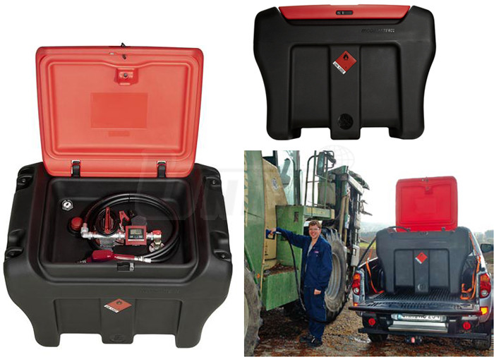 Mobilní nádrže na naftu a LTO o objemu 450 l s elektrickými čerpadly 12 V nebo 24 V, s výdejními pistolemi a průtokoměry slouží pro čerpání nafty a LTO v mobilním nasazení.- mobilní jednostěnná nádrž z vysoce odolného LLDPE, 5 let záruky, splňuje podmínky pro přepravu podle dohody ADR, 450 l