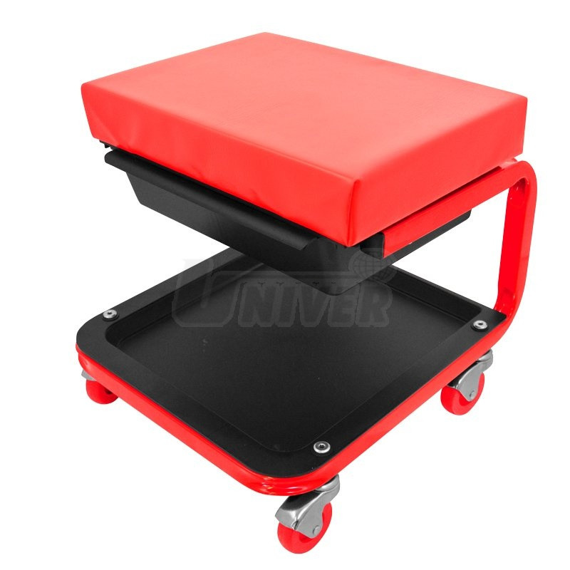 Čalouněné pracovní sedátko se zásuvkou pro univerzální použití v průmyslu, v opravárenských provozech, v autoservisech apod.- čalouněná sedací plocha 370 x 265 mm