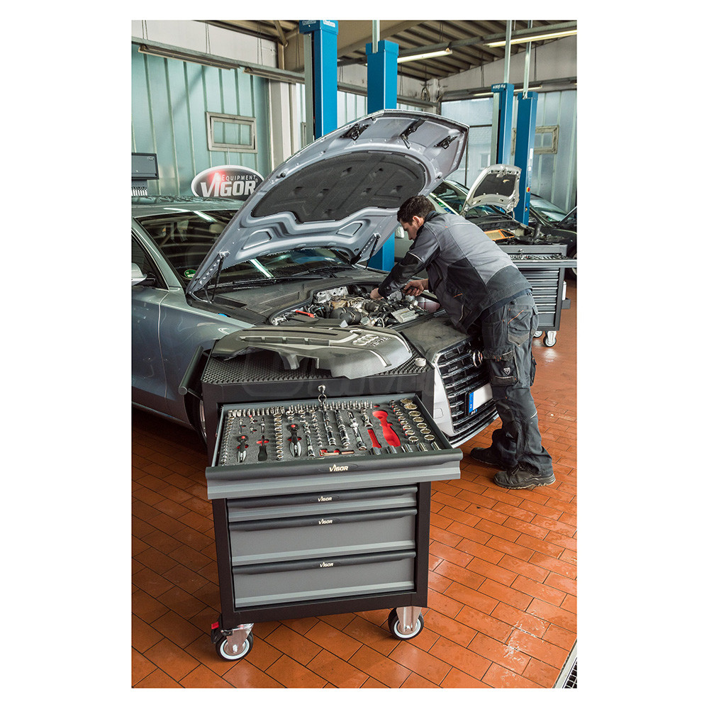 Montážny vozík s 228-dielnou sadou náradia VIGOR V2712N