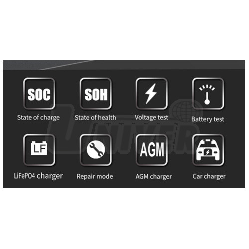 Inteligentná nabíjačka 12 V batérií STD / VRLA / GEL / AGM / EFB / LiFePO4 (4 Ah až 120 Ah) s optimalizovanou krivkou nabíjania a vybíjania, a zároveň skúšačka batérií.- inteligentná nabíjačka všetkých druhov 12 V olovených batérií (4/8/12/18/20/30/60/80/120 Ah) a tiež batérií LiFePO4