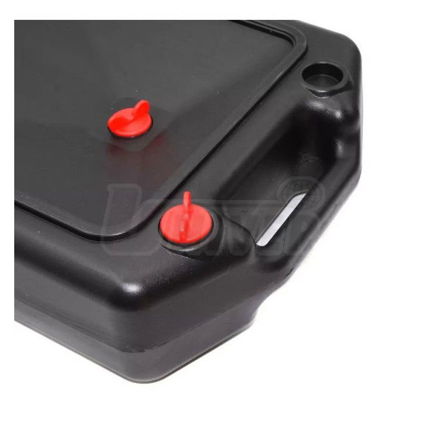 Přenosná uzavíratelná plastová nádoba o objemu 10 l k zachycení vyjetého oleje a k jeho následnému přenášení a snadnému vylití díky praktickým držadlům.- přenosná nádoba / vana o objemu 10 l k zachycení vyjetého oleje a dalších kapalin