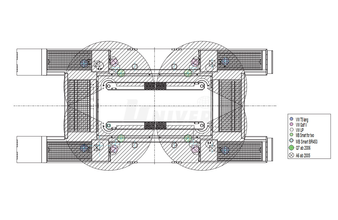 - základní těleso s plošinami pro zvedání automobilů za kola