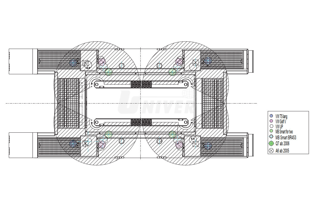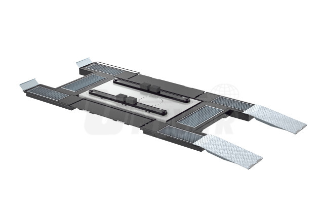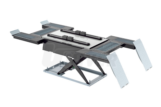 základní těleso s plošinami pro zvedání automobilů za kola nebo pomocí výkyvných nosných ramen