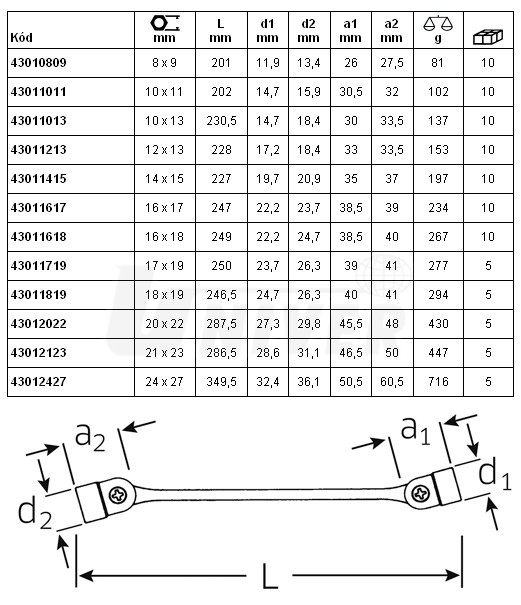 Oboustranné kloubové nástrčné klíče s precizními kloubovými mechanismy.- pro použití v omezeném, stísněném prostoru, příp. u šroubů/matic s poškozenými hranami