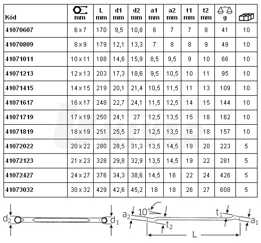 - klíče jsou tenčí než obvyklé, což umožňuje práce v omezeném prostoru