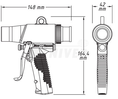 Přepínatelná pneumatická kovová pistole pro odsávání z vrchních ploch do sáčku na prach nebo ofukování.- pneumatická pistole s funkcí odsávání, které lze přepnout na ofukování