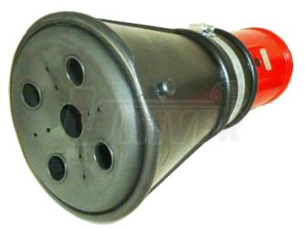 - uzavírací víko s otvory k prořezání, aby se trychtýře lépe upevnily na koncovky výfukových potrubí a při vibracích nespadly, větší otvory slouží k přístupu čerstvého vzduchu do výfuku
