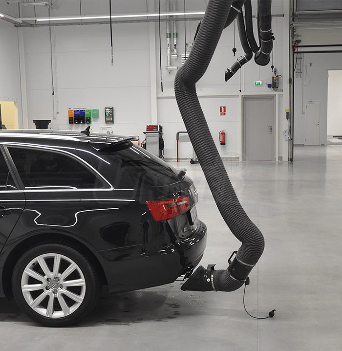 - rameno TOUCHLESS umožňuje odsávání výfukových plynů aniž by přitom došlo ke kontaktu odsávacího trychtýře s koncem výfukového potrubí, není tedy potřeba žádný adaptér pro výfukové koncovky vestavěné do zadního nárazníků