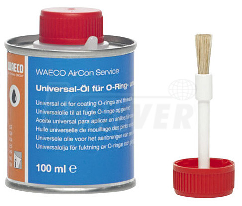 Univerzální olej pro mazání O-kroužků v klimatizacích vozidel v nádobce (100 ml) se štětečkem ve víčku nádobky.- nové O-kroužky musí být natřené olejem, aby při pohybu dobře těsnily, naolejované musí být také závity