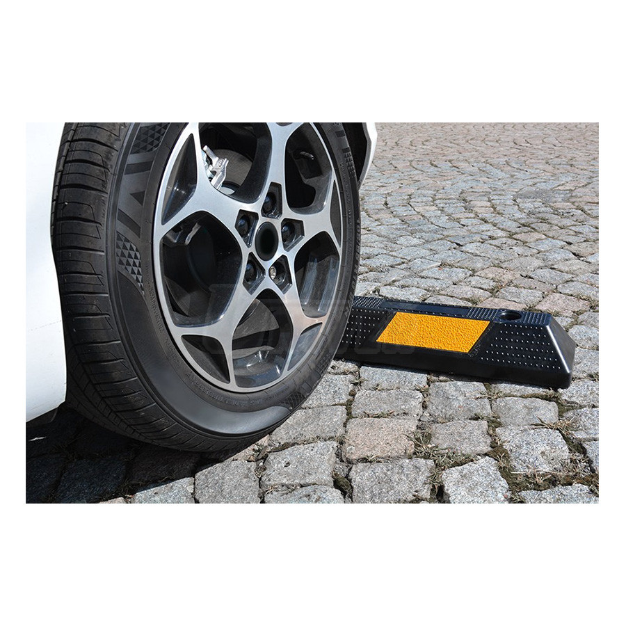 Gumový parkovací doraz s reflexnými prúžkami v dĺžke 900 mm slúži najmä ako bezpečnostný ochranný prostriedok na vymedzenie okraja parkovísk alebo státia.