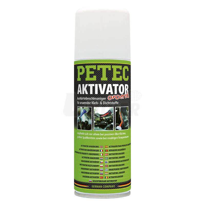 Z lepeného či těsněného místa se odstraní případné staré těsnicí hmoty a usazeniny. Plochy, na které se bude aktivátor nanášet, se důkladně očistí a odmastí (např. čističem PETEC Multi Cleaner obj.č. 82100 nebo 82200). Aktivátor se nastříká jednostranně na pasivní materiál / povrch. Na opačnou stranu se nanese anaerobní lepidlo nebo těsnicí hmota/přípravek a obě lepené strany se ihned spojí. Přebytečný materiál se smyje vodou. Anaerobní vytvrzení se potom realizuje během několika málo minut.