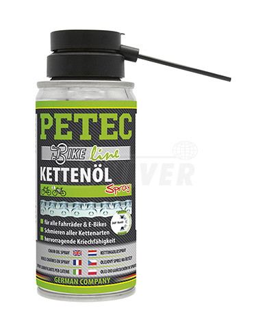 Před použitím sprej dobře protřepejte. Ošetřované povrchy důkladně očistěte a odmastěte čističem řetězů PETEC 70540 nebo obdobným. Olej nastříkejte rovnoměrně na řetěz.