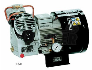 - kompresor EKN 9 je vybaven přívodním kabelem a tlakovou hadicí s hustičem pneumatik, je zkonstruován zejména pro pneuservisy a vybaven odlučovačem vody
