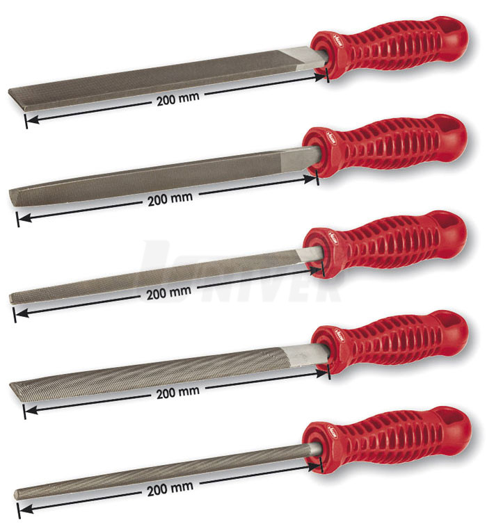 Pilníky mají střední sek (2=střední) a ergonomickou plastovou rukojeť. Splňují požadavky normy DIN 7261.