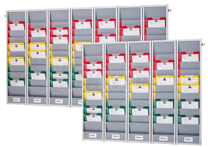 Plánovací tabule pro dokumenty formátu A4 s 5 nebo se 7 samostatnými moduly na stěnové hliníkové kolejnici s jednotnou výškou 1282 mm.- 2 různě velké plánovací tabule s 5 nebo se 7 samostatnými a výměnnými moduly ze speciální umělé hmoty pro dokumenty formátu A4 (desky na zakázky, zástrčné karty atd.)