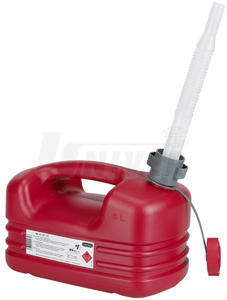 Kvalitní plastové kanystry 5 l / 10 l / 20 l atraktivního designu s oddělitelným pružným výtokovým nástavcem (délka 245 mm, Ø 20 mm), integrovaným odvětráním a uzavíracím víčkem na fixačním pásku. Jsou odolné i proti silným nárazům. Výtokové nástavce jsou uloženy zasunuté v kanystrech. Ty se mohou používat na všechny tekuté pohonné hmoty (benzin, nafta apod.). Jsou absolutně bezpečné a mají schvalovací certifikáty TÜV/GS/UN/BAM.Použití: průmysl, řemeslná výroba, dílny, domácnosti apod.