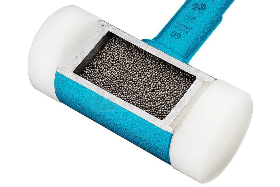 - výplň střední části hlavy kovovými kuličkami zaručuje, že při úderu nedochází k odrazu, plná síla úderu se přenese na opracovávaný kus