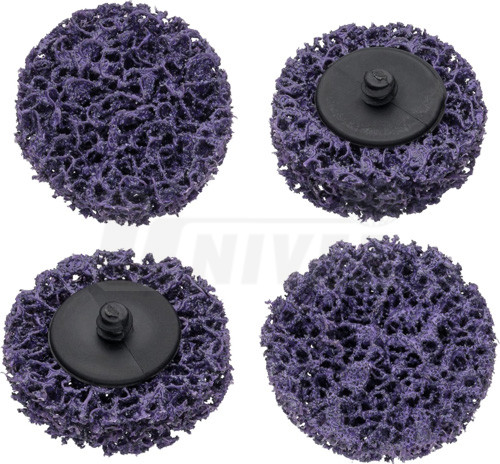 Sada čisticích kotoučů (4-dílná) pro čištění silně ulpívajících nečistot na oceli, hliníku apod., pro čištění svárů, pro odstraňování laků atd., průměr 50,8 mm, materiál: nylon, dlouhá životnost, doporučené otáčky 8000 – 10000 min-1.