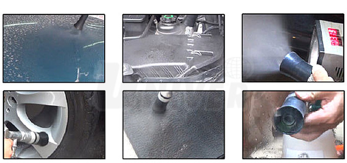 - vynikající čisticí schopnost umožňuje perfektní, prakticky bezkontaktní čištění čalounění, koberců, plastů, střech kabrioletů, ale i běžných nebo obtížně přístupných míst, jako jsou palubní desky, obložení dveří, vyústění a kanálky větrání a topení, různé spáry, záhyby, prahy dveří, disky kol atd.
