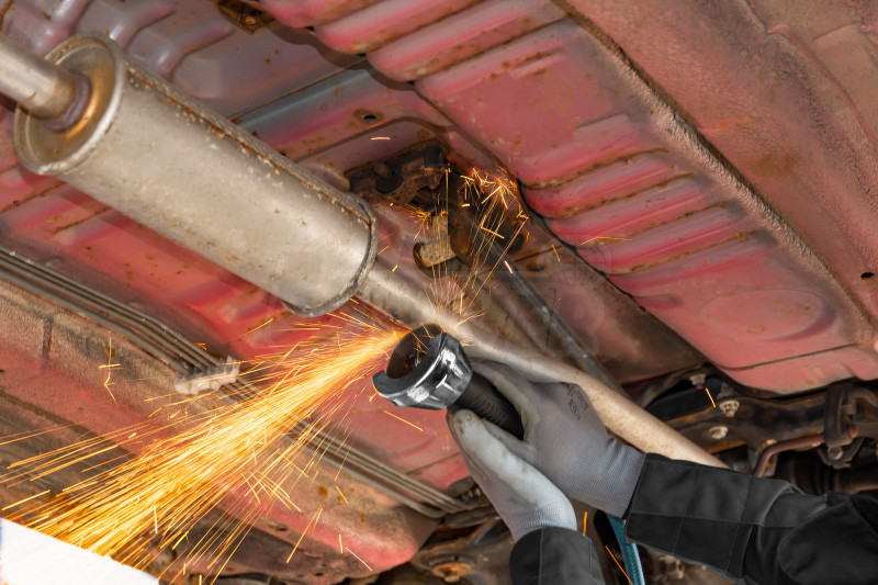Univerzální pneumatická úhlová rozbrušovací pila.- zahnutá verze pro práci ve stísněném prostoru