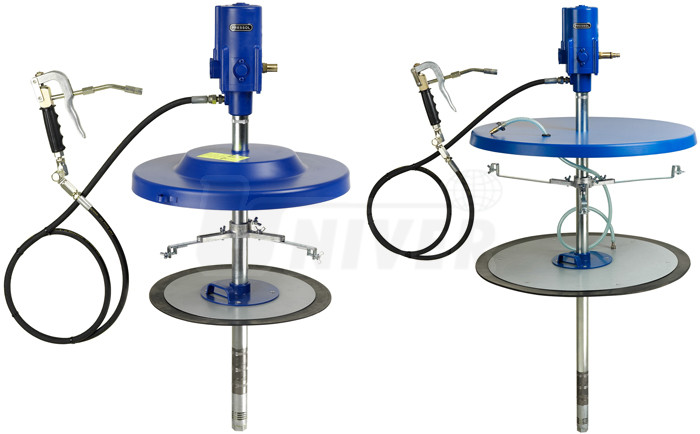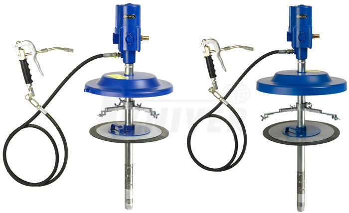 Pneumatické mazací přístroje pro plastická maziva v baleních/nádobách 20 kg / 25 kg / 50 kg / 200 kg s vynikajícími vysokotlakými čerpadly 50:1, vysokotlakými mazacími pistolemi a výdejními hadicemi.- pro mazání plastickými mazivy až do klasifikace NLGI 00-2 (běžné mazací tuky, jen omezeně i tuky NLGI 3), v baleních/nádobách 20 kg / 25 kg / 50 kg / 200 kg