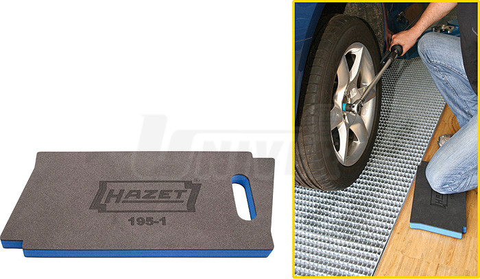 Speciální podložka pod kolena z pěnové hmoty HAZET 195-1 vysoké kvality renomovaného německého dodavatele HAZET je praktickou pomůckou pro každého mechanika, případně údržbáře a obdobné profese. Podložka ve tvaru loga HAZET je vyrobena ze speciální pěnovky, která představuje nový, vyšší komfort pro osoby, které jsou nuceny při práci občas klečet. Navíc je omyvatelná a neabsorbuje vlhkost ani tekutiny.Rozměry: 450 x 210 x 30 mm.