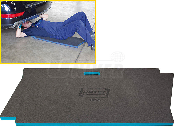 Podložka z pěnové hmoty je praktickou pomůckou pro každého mechanika, případně údržbáře a obdobné profese. Velká podložka ve tvaru loga HAZET je vyrobena ze speciální pěnovky, která představuje nový, vyšší komfort pro osoby, které jsou nuceny při práci občas ležet (např. při opravě pod vozidlem, které z nějakého důvodu nelze na místě zvednout nebo jen do nízké výšky). Navíc je omyvatelná a neabsorbuje vlhkost ani tekutiny.Rozměry: 975 x 385 x 30 mm.