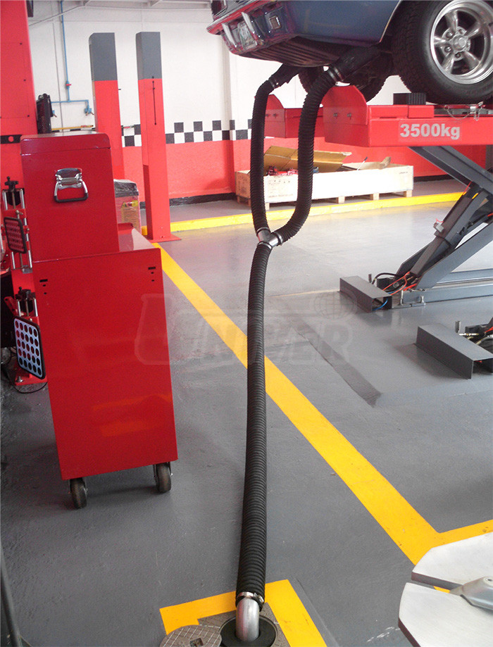 Podpodlažní systém odsávání výfukových plynů konstruovaný pro použití podlahových uzávěrů s venkovní odsávací hadicí.- jednoduchý, méně nákladný systém odsávání výfukových plynů motorových vozidel určený zejména pro autoservisy, kde je možné bez problémů provést podpodlažní instalaci, a kde je nižší četnost používání odsávacího systému
