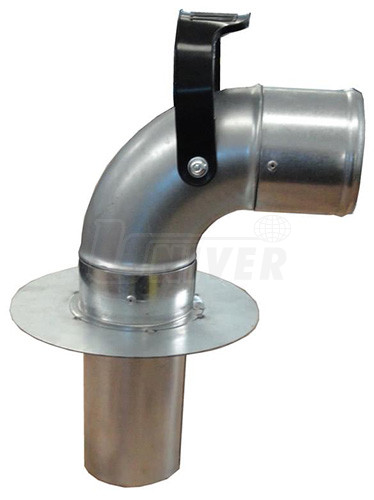 4 rozměrově různé podlahové oblouky 90° na jedné straně pro připojení venkovní odsávací hadice příslušného rozměru a na druhé straně pro zastrčení do podlahového trychtýře.