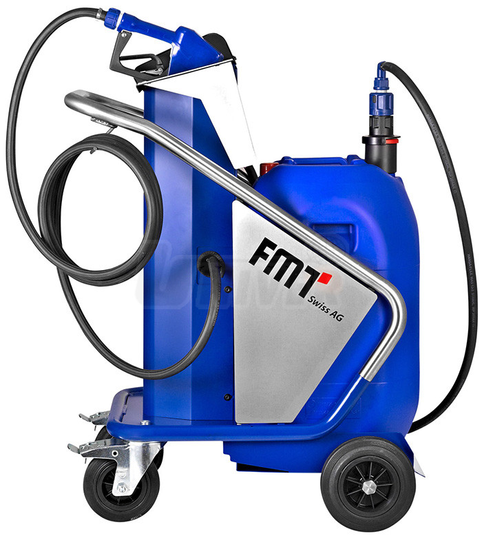 Pojízdná plnička AdBlue a vody s elektrickým čerpadlem 12 V 4,5-9 l / min, baterií AGM 12 V, výdejní hadicí 2 m, automatickou výdejní pistolí a plastovou nádobou 60 l.- kvalitní elektrické membránové samonasávací čerpadlo 12 V / 30 l / min (25 281) pro čerpání AdBlue a vody, materiál: skříň čerpadla (PA 6 GF 30), membrána / těsnění (EPDM / FKM - Viton)