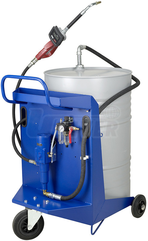 Pojízdná plnička olejů s bočním pneumatickým čerpadlem 3:1 určená pro sudy/nádoby 200/220 l.Má