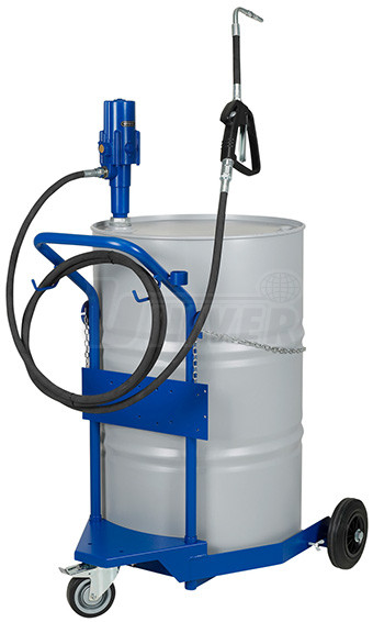 Pojízdné plničky olejů (do SAE 90) s vrchním pneumatickým čerpadlem 3:1, se sací trubkou, s výdejní pistolí a hadicí, příp. s průtokoměrem, a s vozíkem pro sudy 200/220 l.- uplatní se zejména v autoservisech, při servisu stavebních a zemědělských strojů, servisu armádní techniky, v průmyslu, údržbě atd.