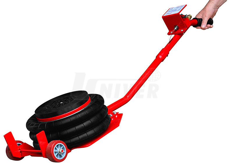 Pojízdný pneumatický třístupňový / tříměchový zvedák s nosností 3,8 t má dvě kolečka a jednoduché ovládání na oji.- pneumatické měchové zvedáky jsou v autoservisech i v pneuservisech velmi oblíbené