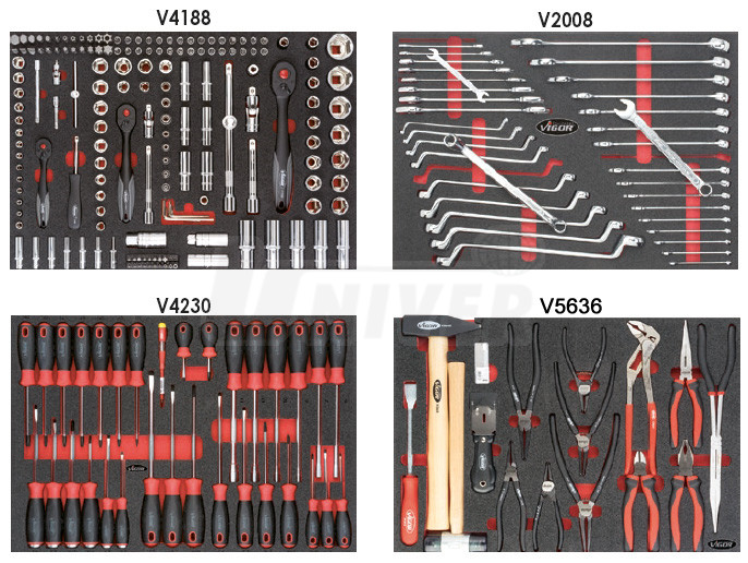Pojazdný pracovný stôl s 256-dielnou sadou náradia VIGOR V5156