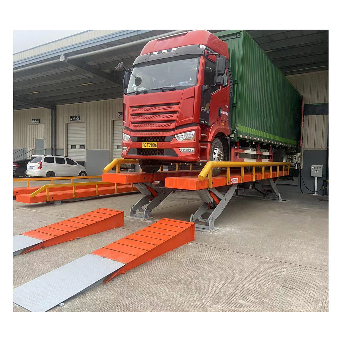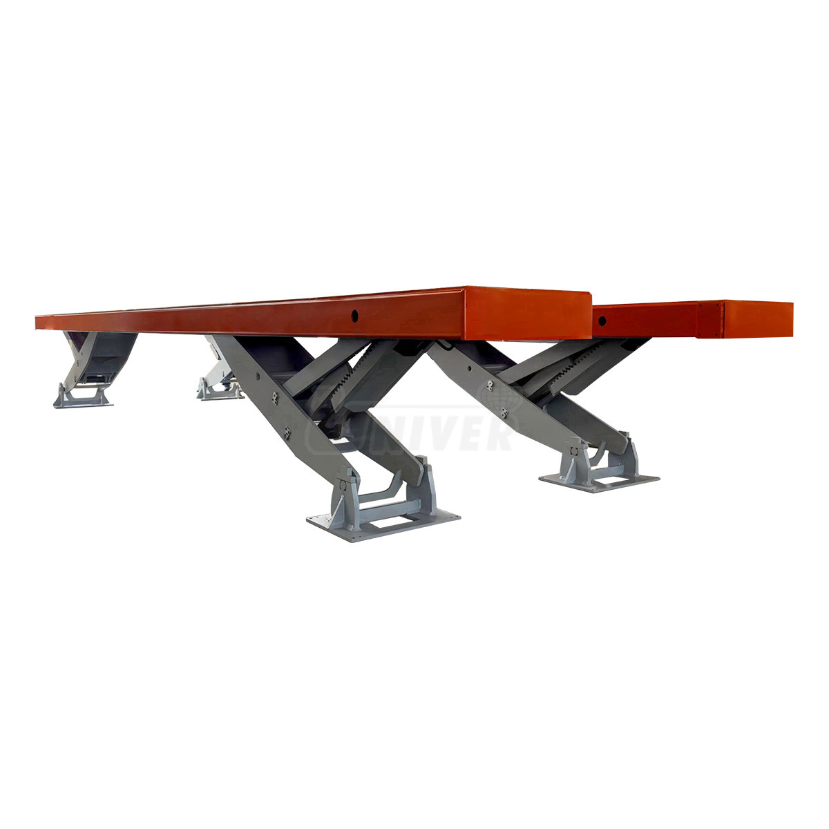 Elektrohydraulický polopodzemný plošinový zdvihák (Y-tec) s nosnosťou 25 t s plošinami dlhými 11600 mm na zdvíhanie bežných a ťažkých úžitkových vozidiel.- zdvíhacia kapacita 25 t (EN 1493:2022), s 2 zdvíhacími plošinami s dĺžkou 11600 mm