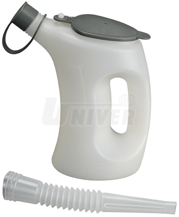 Kvalitní polyetylenové odměrné konve/nádoby různého objemu s oddělitelným pružným výtokovým nástavcem (délka 160 mm), s víčkem a ochranným víčkem na výtoku jsou opatřeny odměrnými stupnicemi po 0,25 l (0,5 l, 1,0 l) nebo 0,5 l (2 l, 3 l, 5 l) . Dobře odolávají olejům, kyselinám, pohonným hmotám a prasknutí.Použití: průmysl, řemeslná výroba, dílny apod.