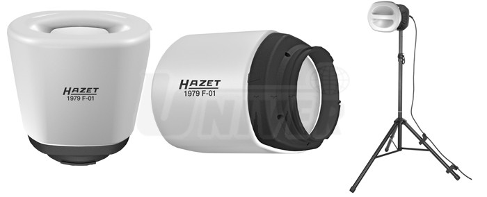 HAZET 1979F-01 světelný difuzér, nástavec pro lepší, rovnoměrnější osvětlení prostoru a také ke 360°-rozptýlení světla, aretace nástavce pomocí bajonetového uzávěru.