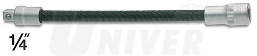Prodlužovací pružný nástavec délky 150 je vyroben z vysoce kvalitního chrom-vanadia (koncovky) a odolného materiálu pružného dílu. Má čtvercový vývod 1/4".