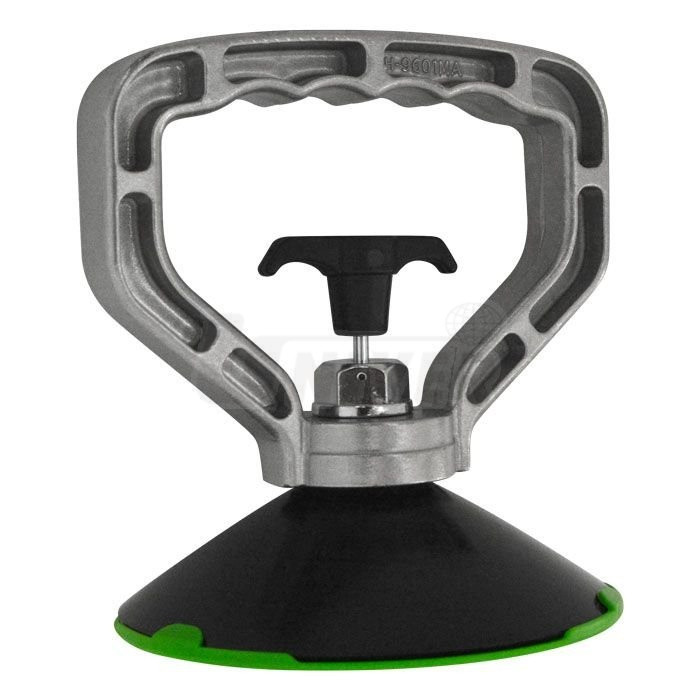 Jednoruční přísavka Ø 125 mm z aluminiové slitiny s přísavnou gumou se používá kromě jiného i k vytahování promáčklin plechů karosérií.- jednoruční přísavka / podtlakový manipulátor k vytahování promáčklin plechů karosérií v rámci oprav technologií PDR