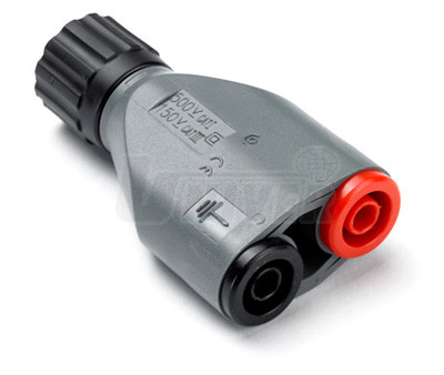 Tento adaptér spojuje dva banánkové konektory (4 mm) s BNC-konektorem. Pokud se jedná o snímač se 4 mm-banánkovým konektorem / výstupem, např. proudové kleště, tento adaptér umožňuje připojení na BNC-vstup osciloskopu.