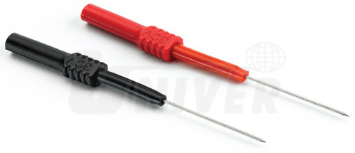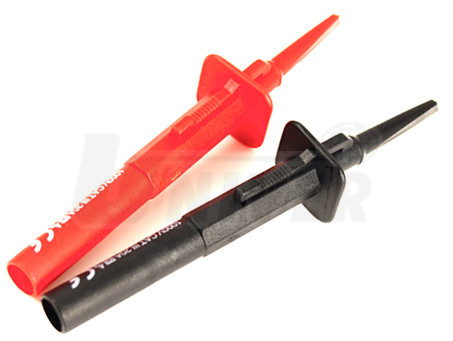 Pružný jehlový zkušební hrot, černý (TA161), červený (TA162), průměr připojovaného pouzdra 4 mm. Umožňují proniknout pod izolaci vícekolíkových konektorů a měřit signály bez porušení izolace kabelů nebo bez rozpojení konektoru.