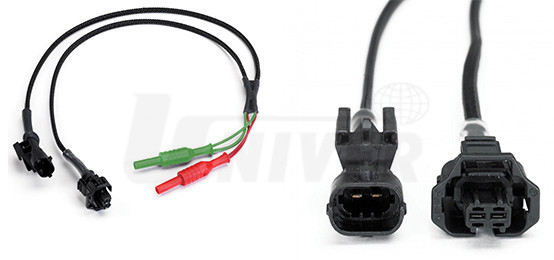 Odbočkový kabel umožňuje přístup k jednotlivým kabelům a dovoluje nasazení proudových kleští, aby se např. dal změřit proud i napětí vstřikovacího ventilu.